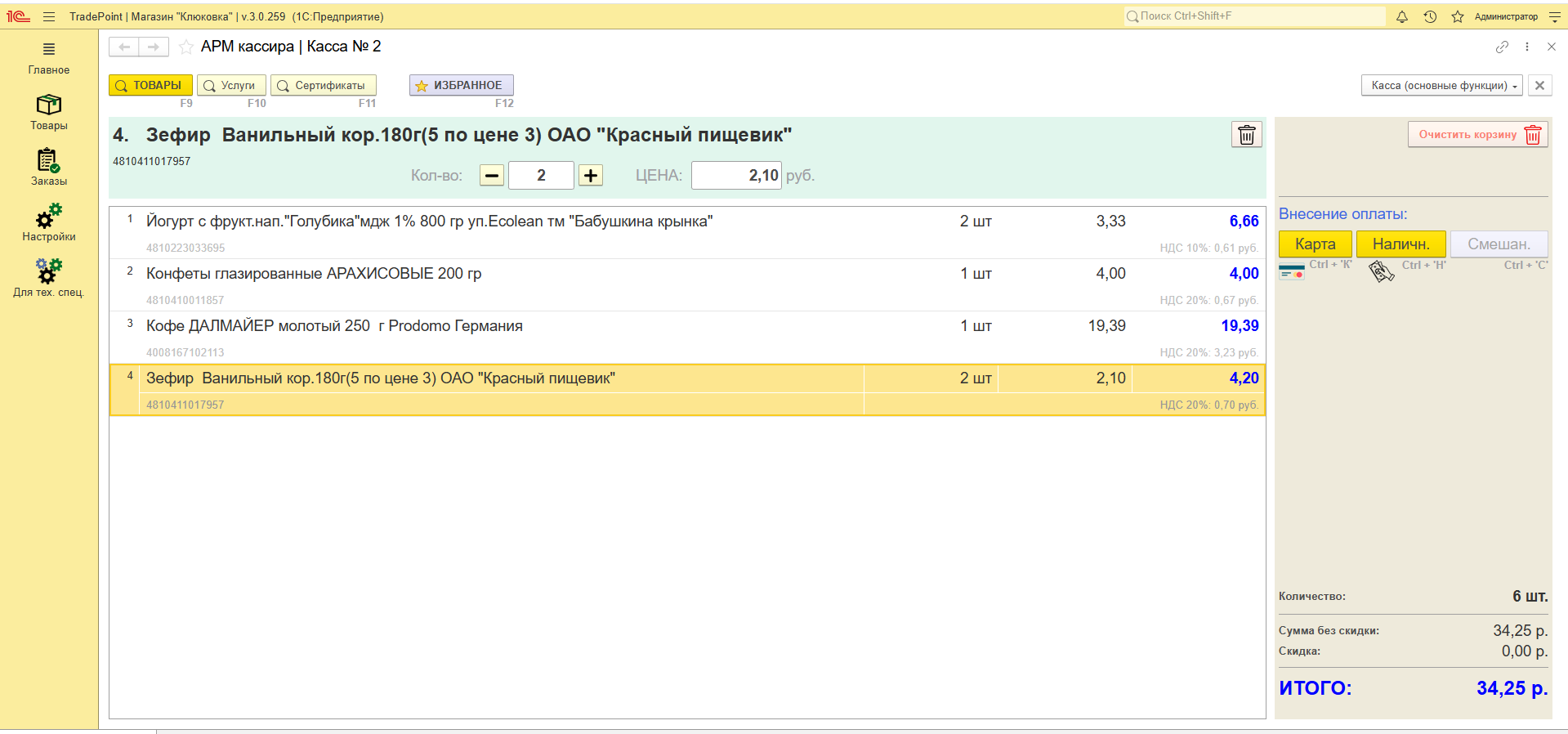 2й вариант работы кассира с «1С:TradePoint» и Программной кассой